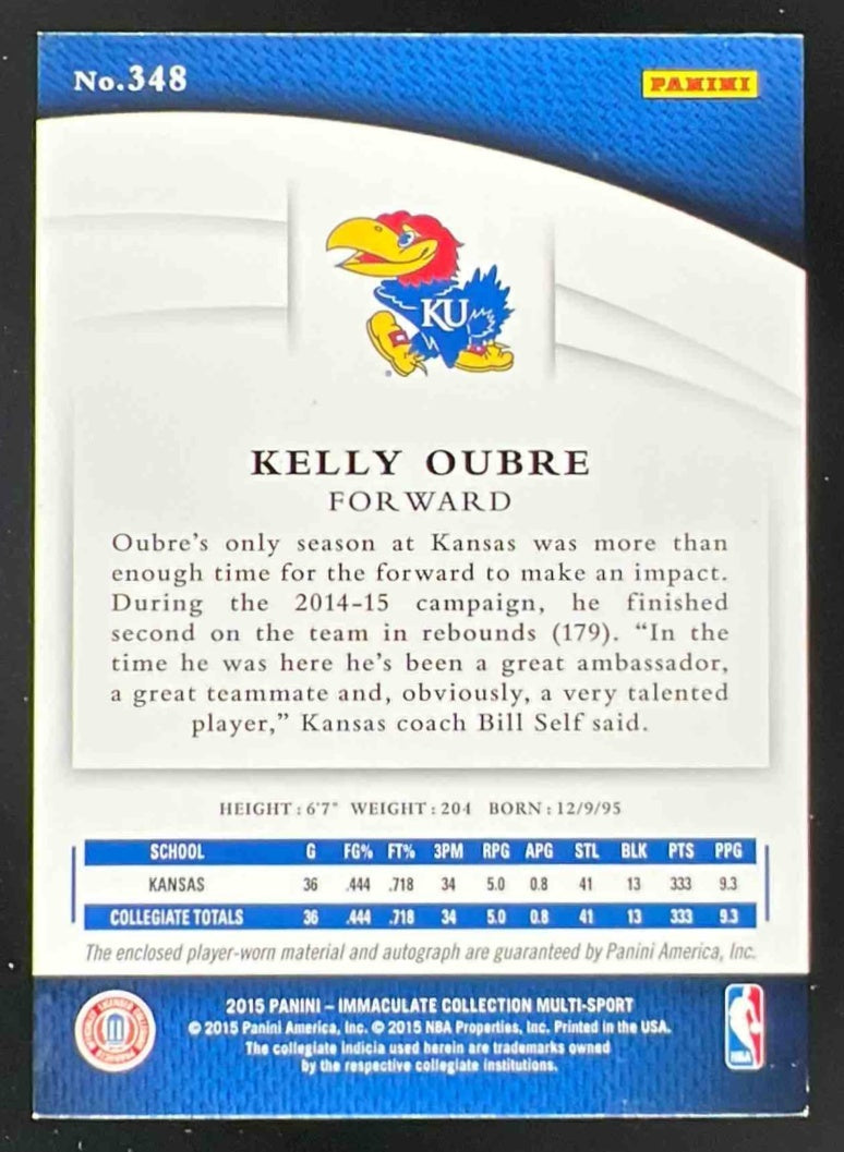 2015 Immaculate Collection Collegiate Patches Gold #348 Kelly Oubre Jr. Auto /25
