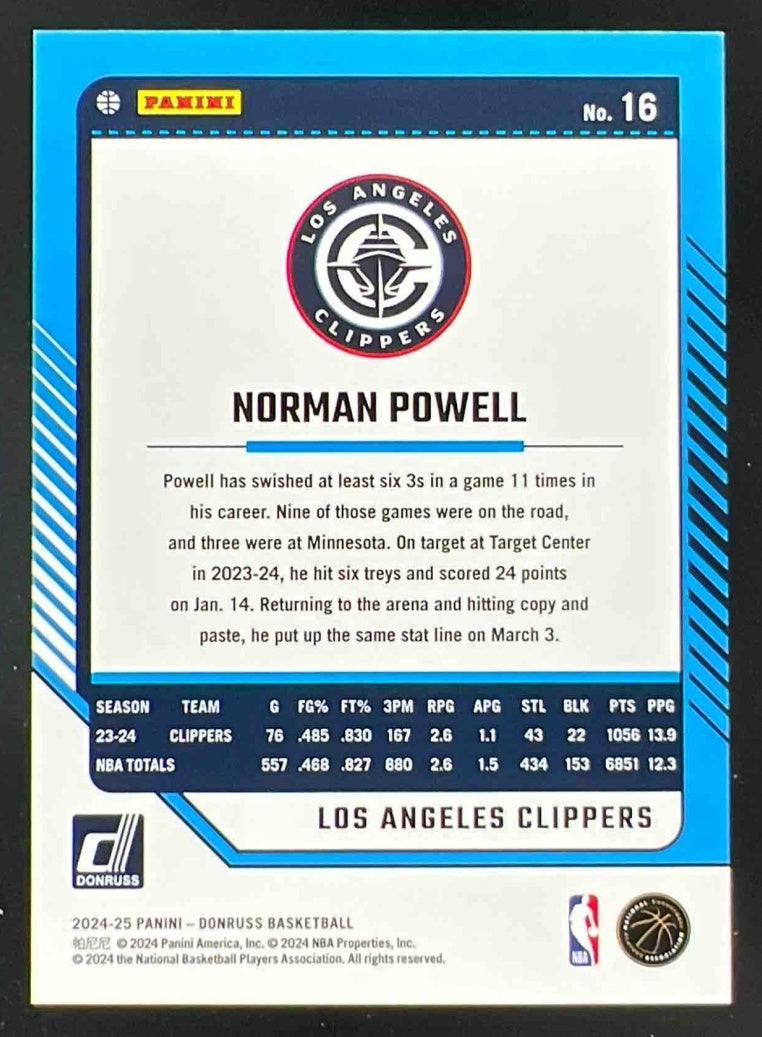 2024-25 Donruss Holo Black Laser #16 Norman Powell 1/1