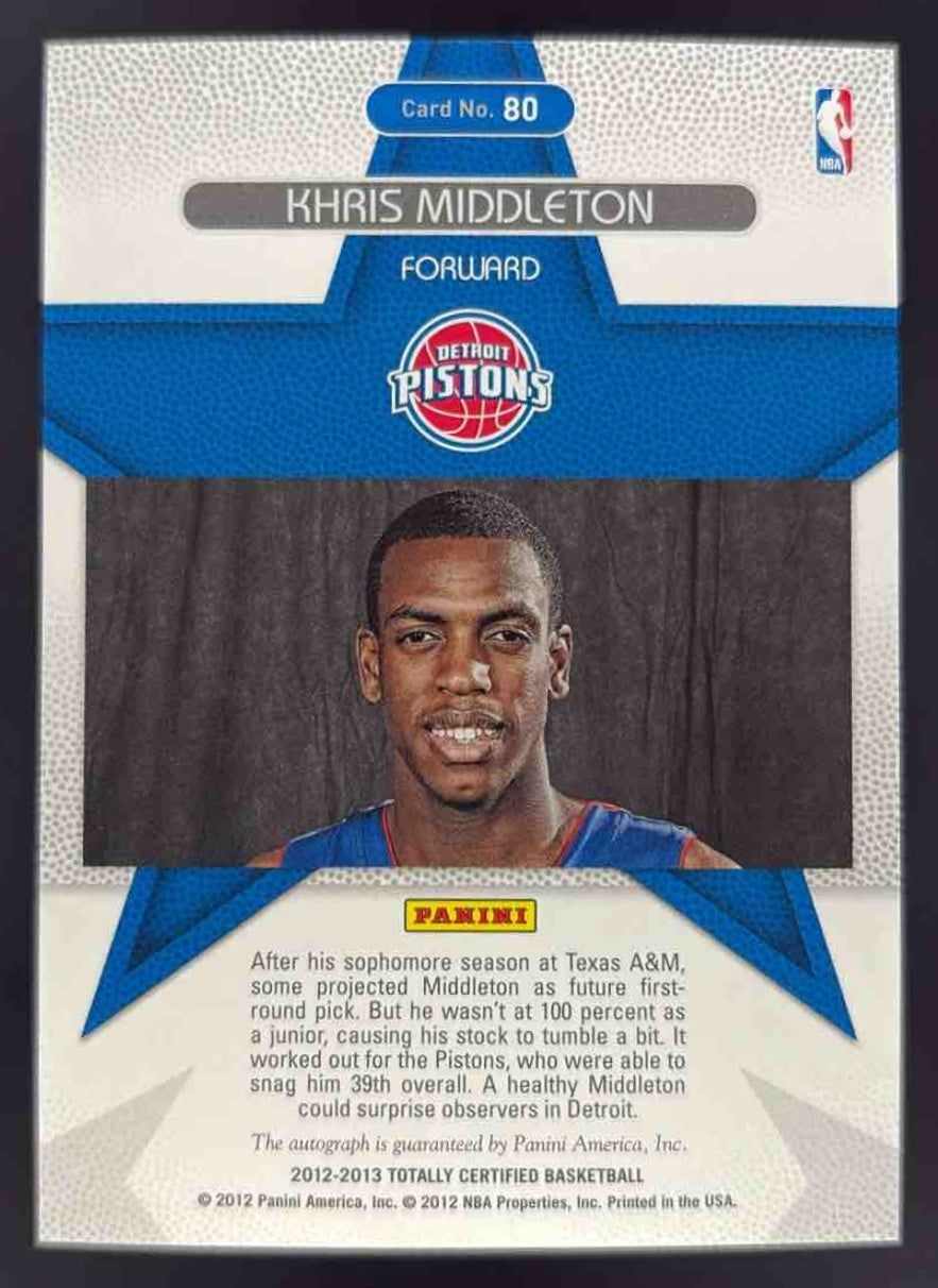 2012-13 Totally Certified Rookie Roll Call Autograph #80 Khris Middleton RC Auto