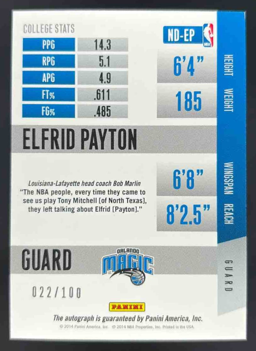 2014-15 Panini Paramount Next Day Autographs #ND-EP Elfrid Payton RC Auto /100