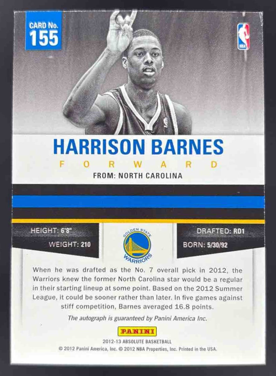 2012-13 Panini Absolute #155 Harrison Barnes RC Auto /199