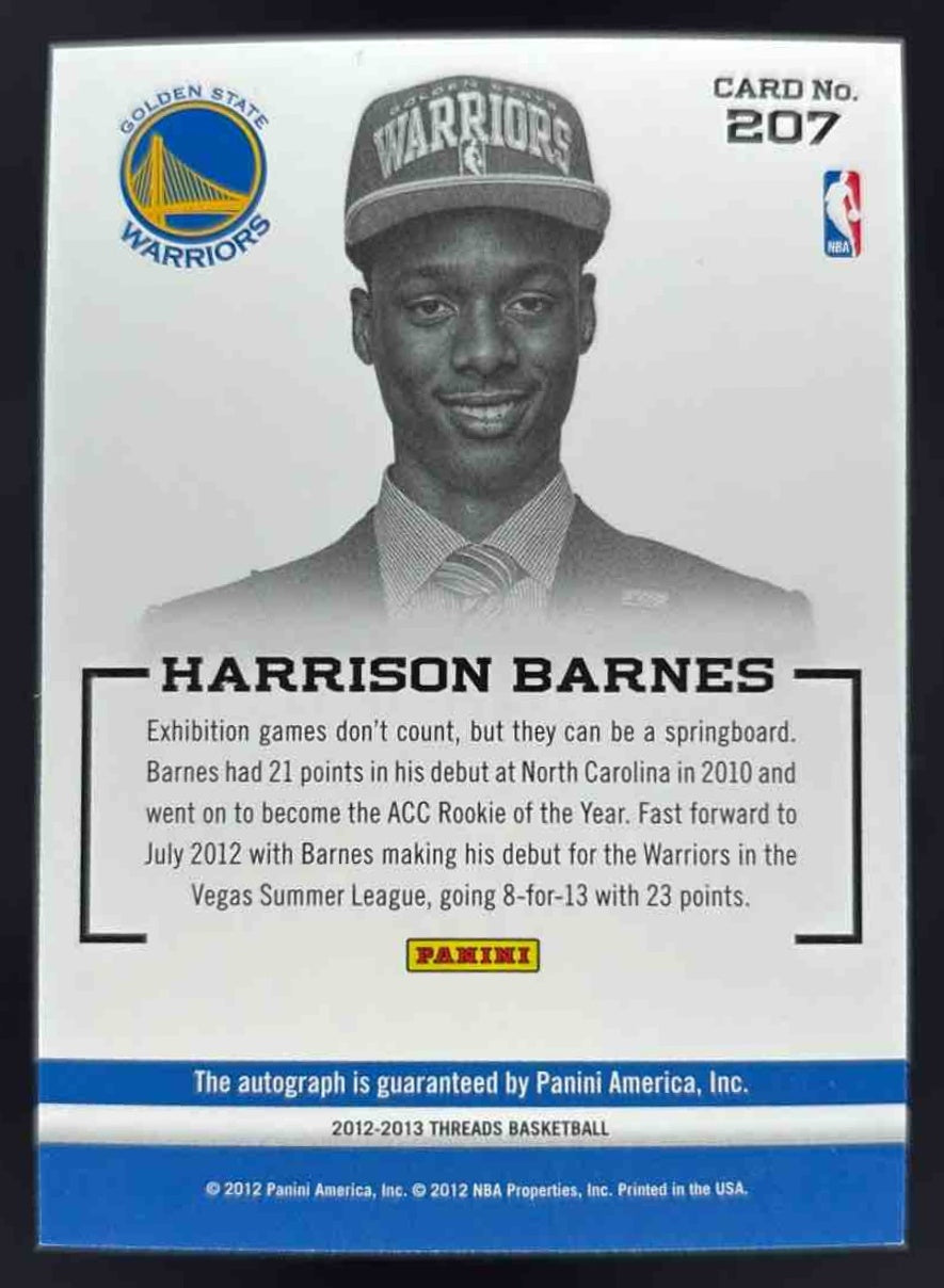 2012-13 Panini Threads #207 Harrison Barnes RC Auto