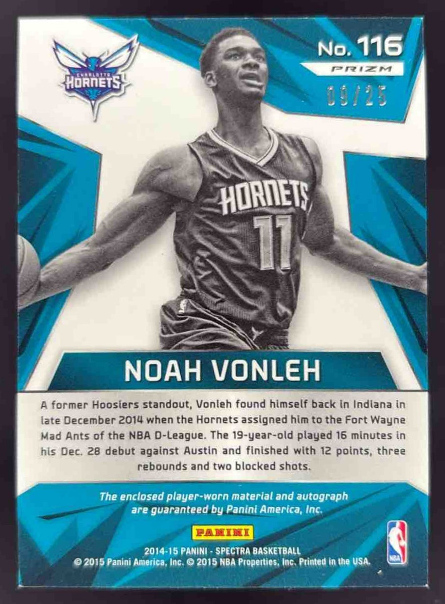 2014 Spectra Rookie Jersey Prizms Orange #116 Noah Vonleh RC Auto /25