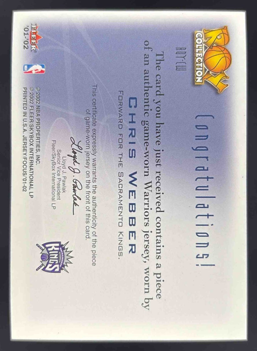 2001-02 Fleer Focus ROY Collection Jerseys #ROY-CW Chris Webber