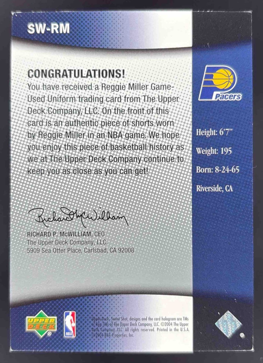 2004-05 Upper Deck Sweet Shot Sweet Swatches #SW-RM Reggie Miller