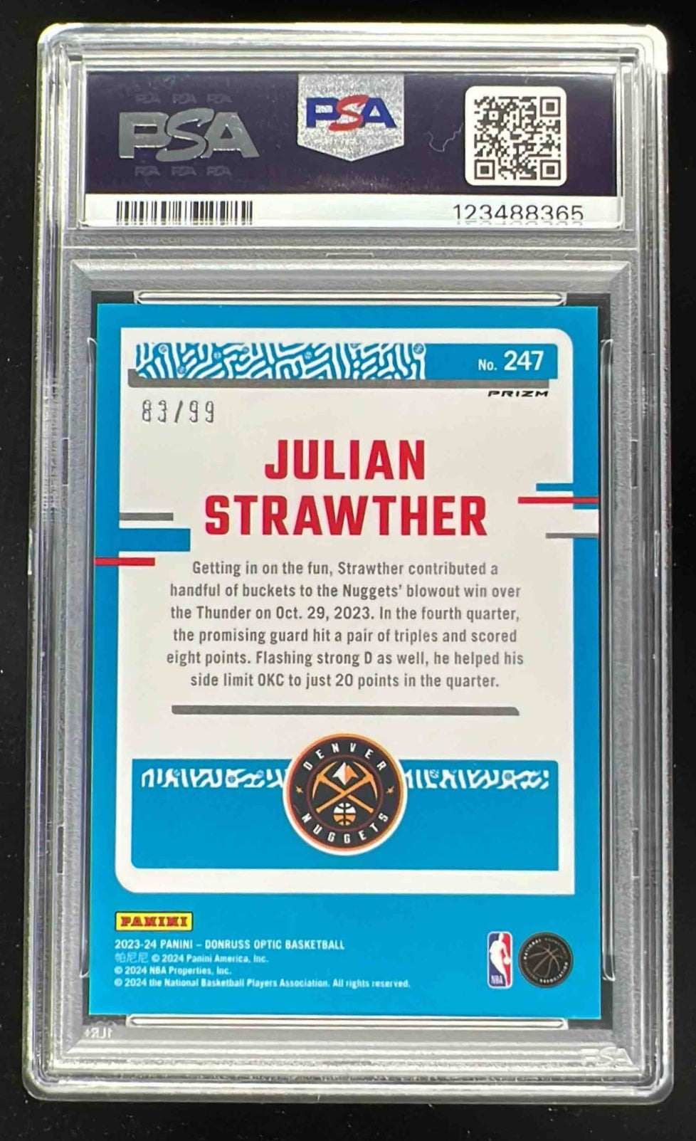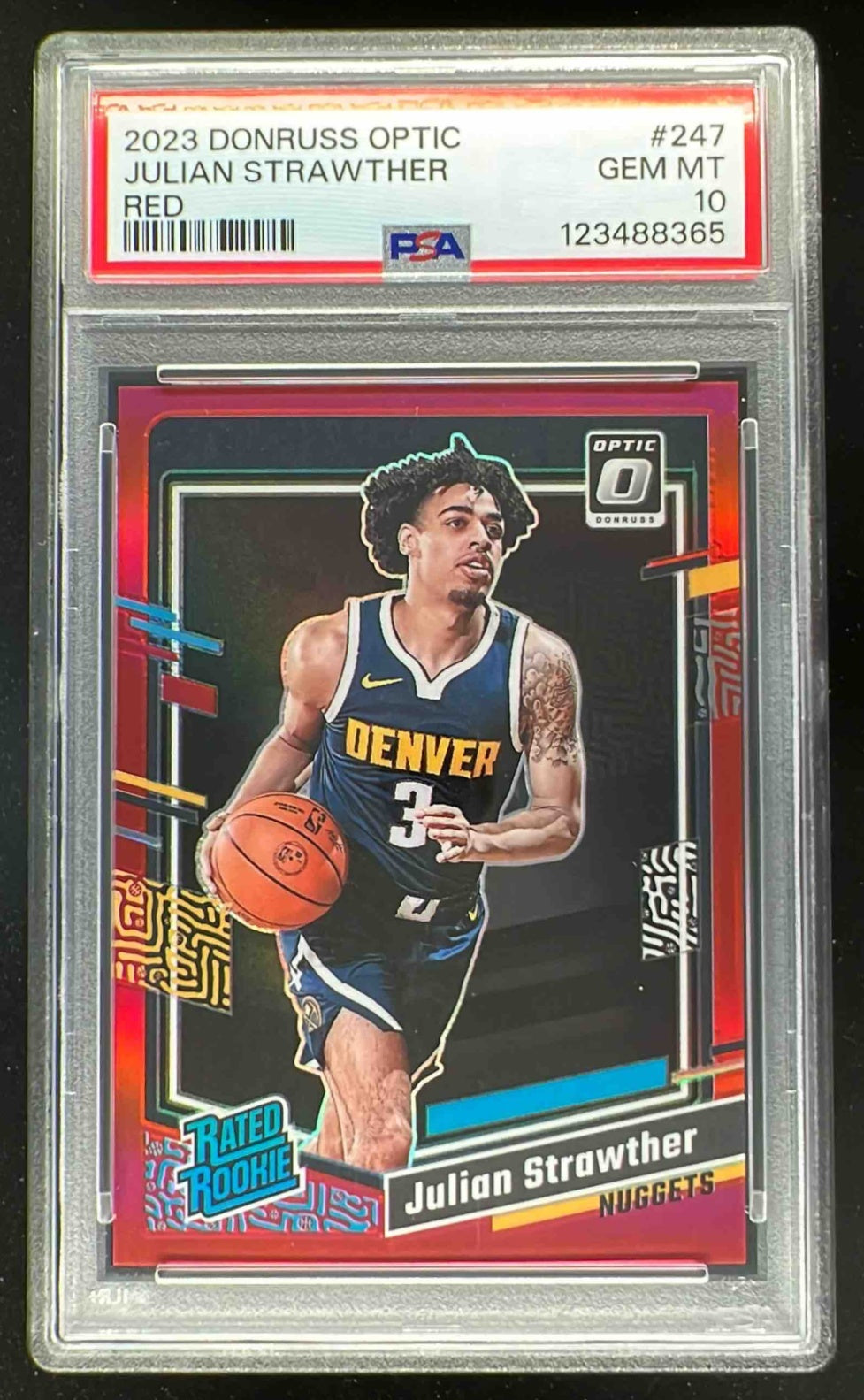 2023 Donruss Optic Red Prizm #247 Julian Strawther RC Rated Rookie /99 PSA 10