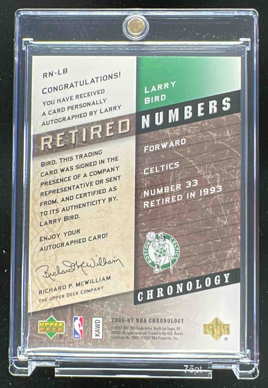 2006-07 Chronology Retired Numbers #RNLB Larry Bird Autograph Auto /33