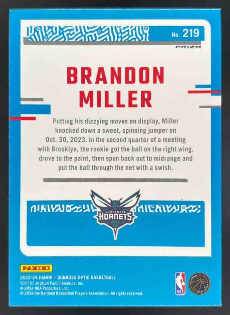 2023 Panini Donruss Optic Green Shock Prizm #219 Brandon Miller RC Rated Rookie