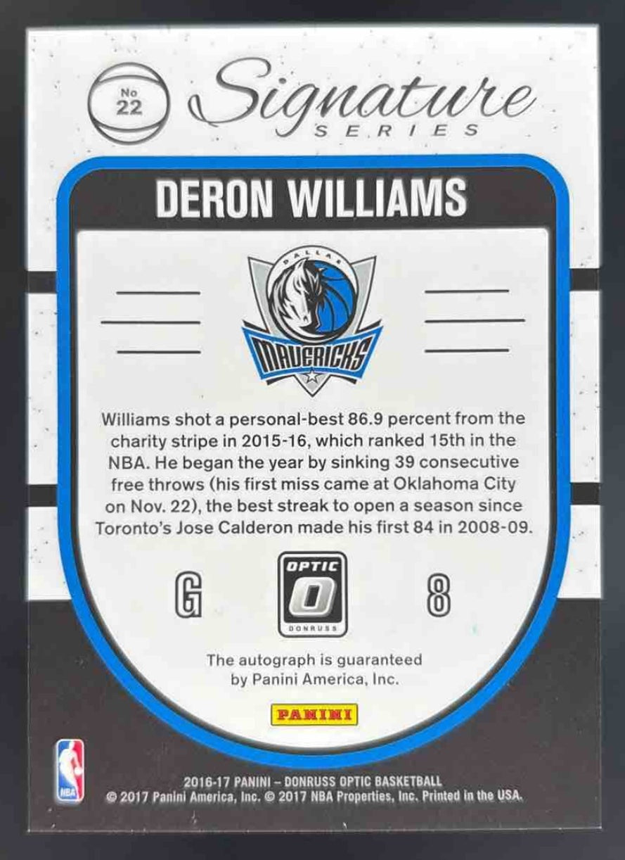2016-17 Panini Donruss Optic Signature Series #22 Deron Williams Auto