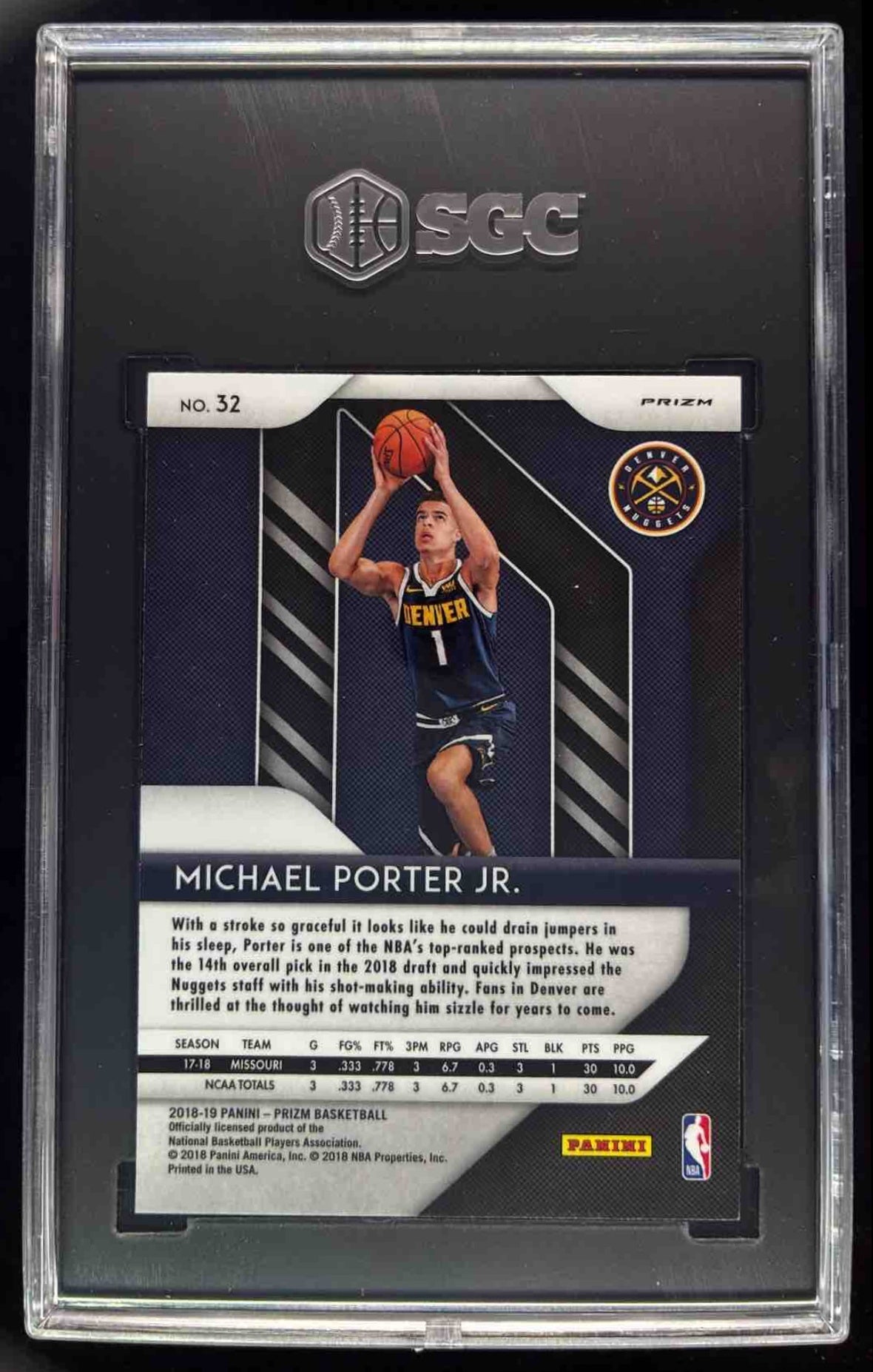 2018-19 Panini Prizm Prizms Silver #32 Michael Porter Jr. RC SGC 9.5