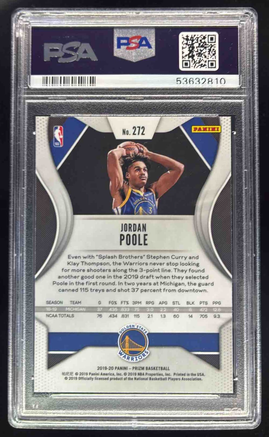 2019-20 Panini Prizm #272 Jordan Poole RC PSA 10