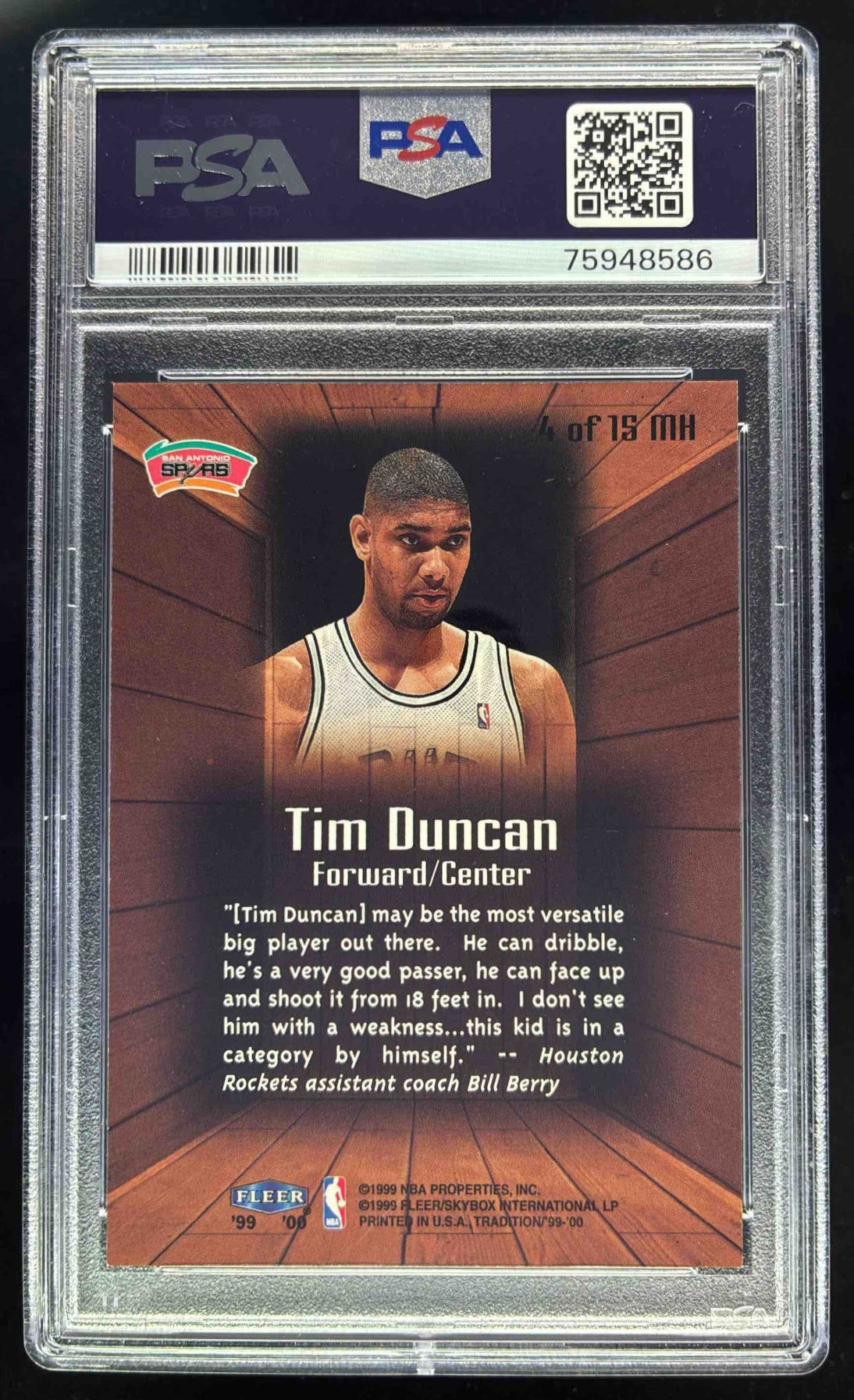 1999-00 Fleer Tradition Masters of the Hardwood #4 MH Tim Duncan PSA 9
