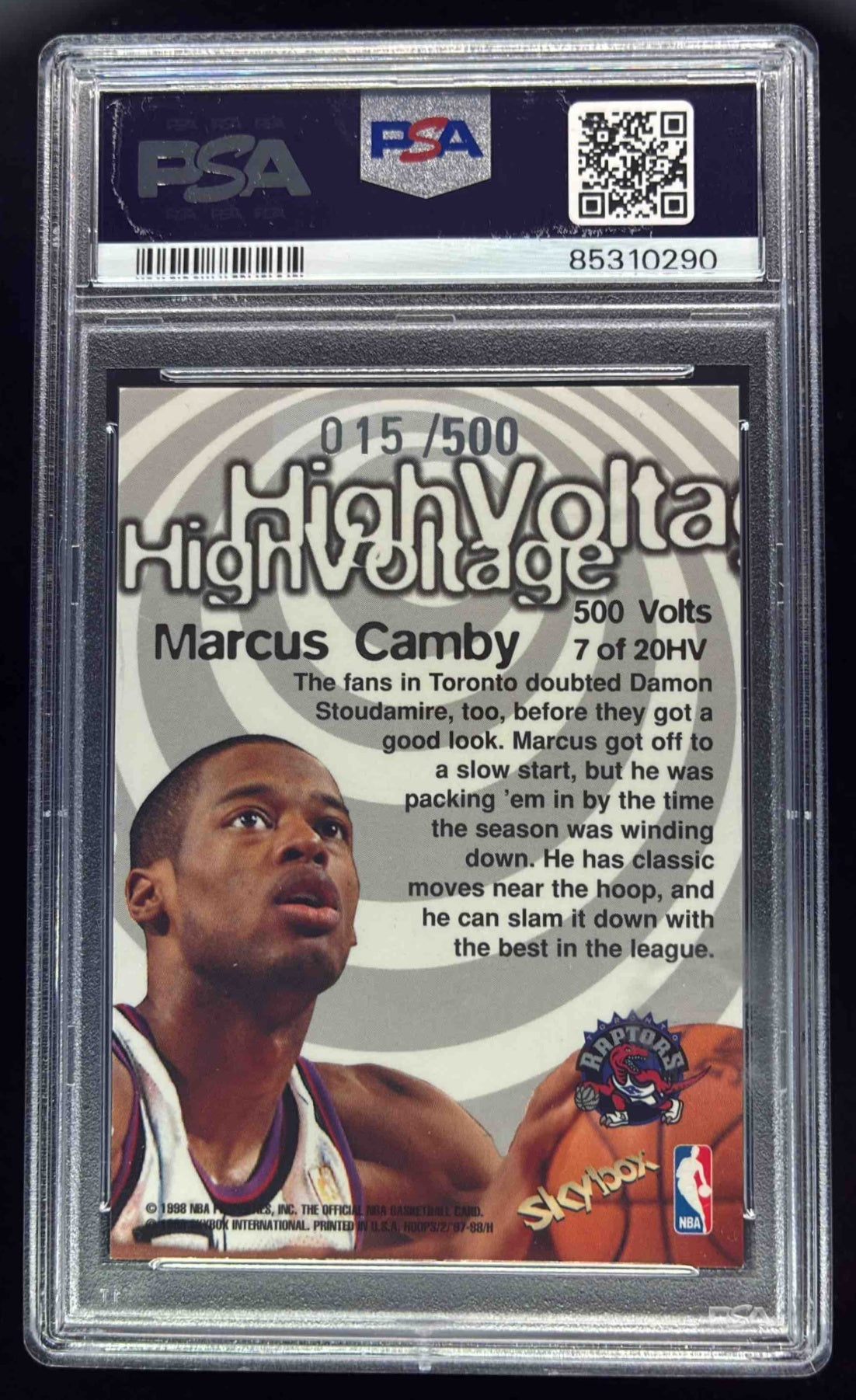 1997-98 Hoops High Voltage 500 Volts #7 HV Marcus Camby /500 PSA 7