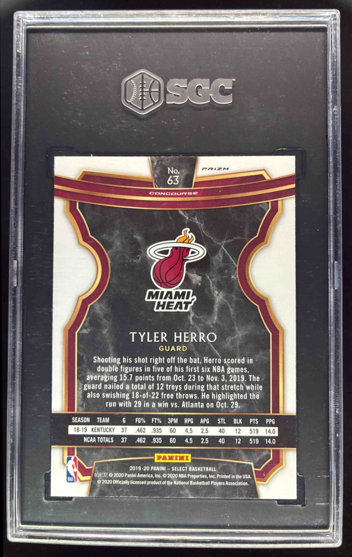 2019-20 Panini Select Gold Wave Prizms #63 Tyler Herro RC Concourse SGC 10