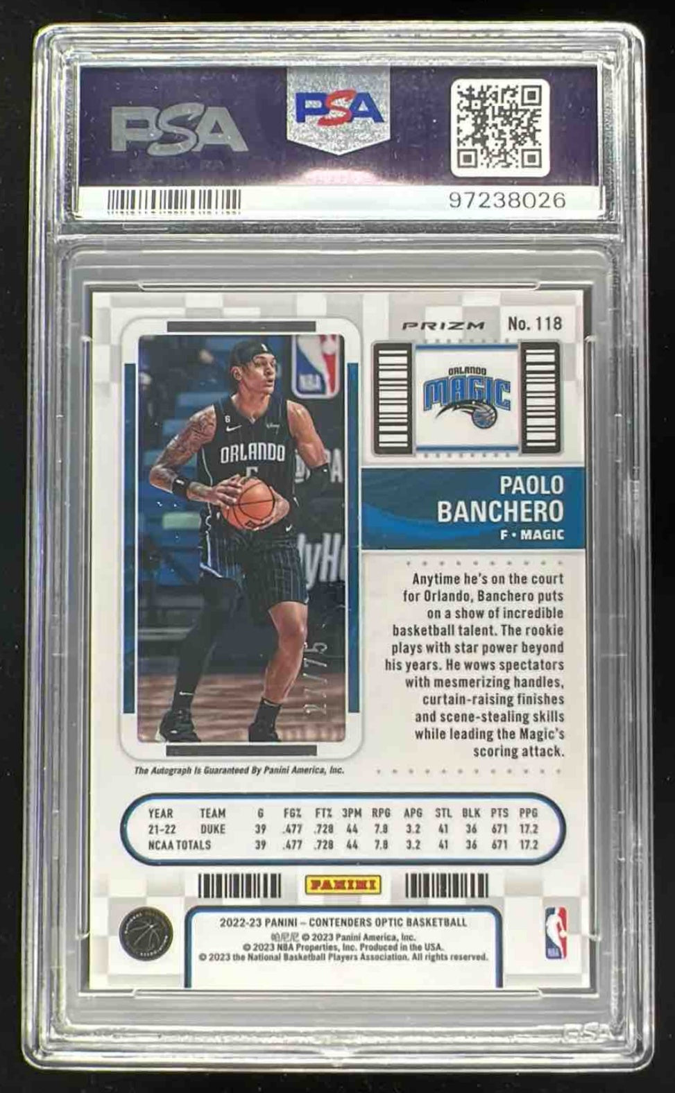 2022-23 Panini Contenders Optic Green #118 Paolo Banchero RC Auto /75 PSA 10
