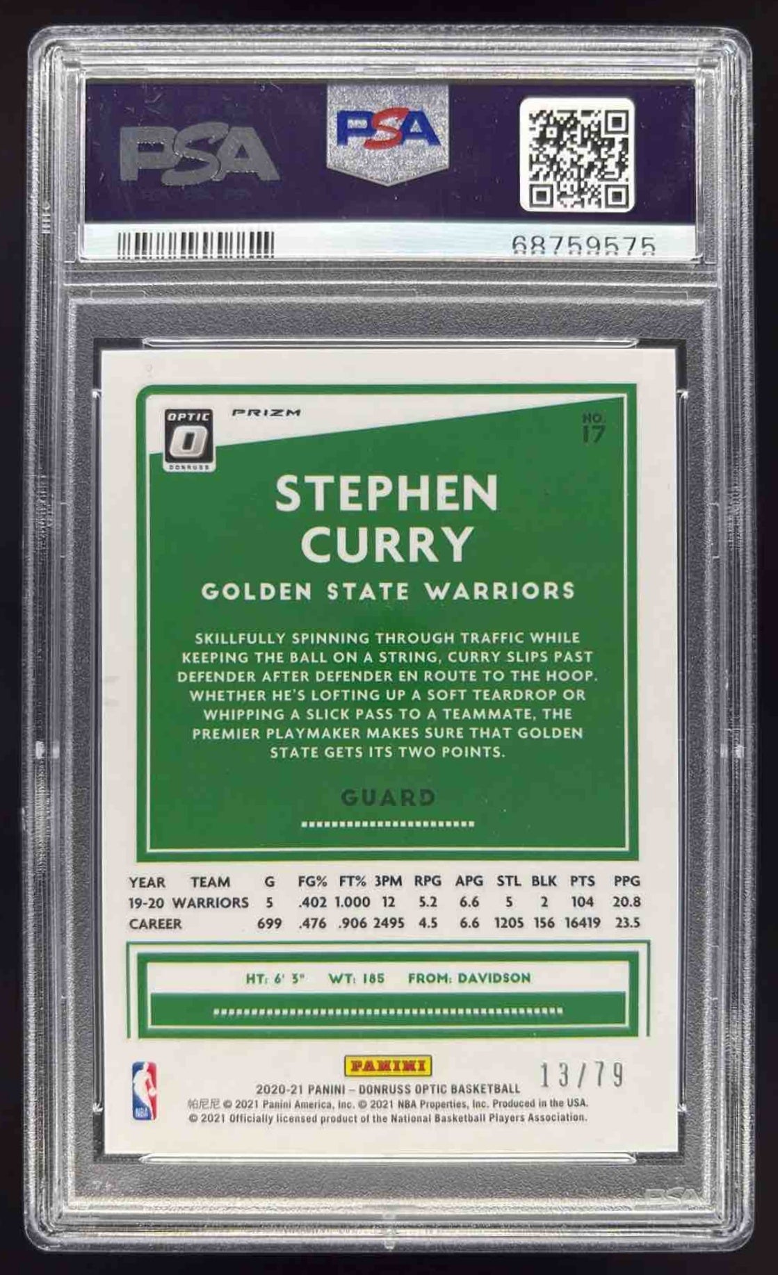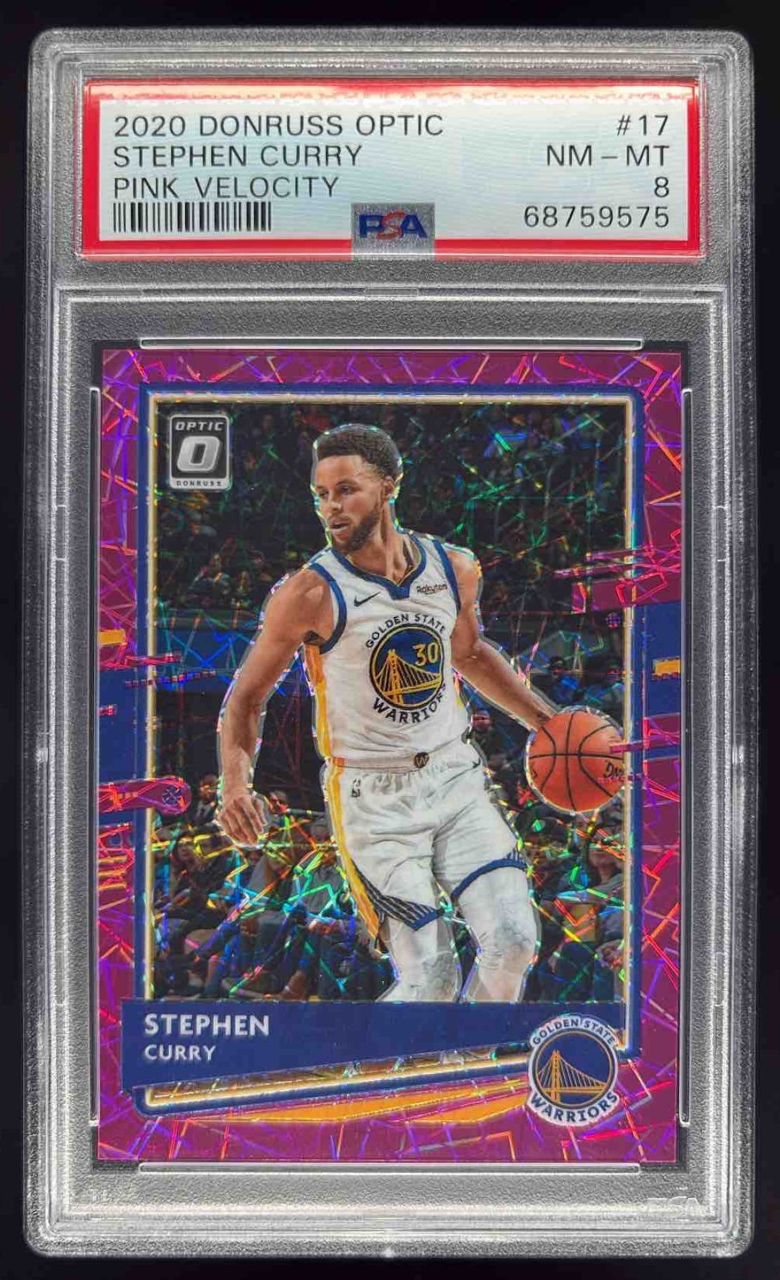 2020-21 Panini Donruss Optic Pink Velocity #17 Stephen Curry /79 PSA 8