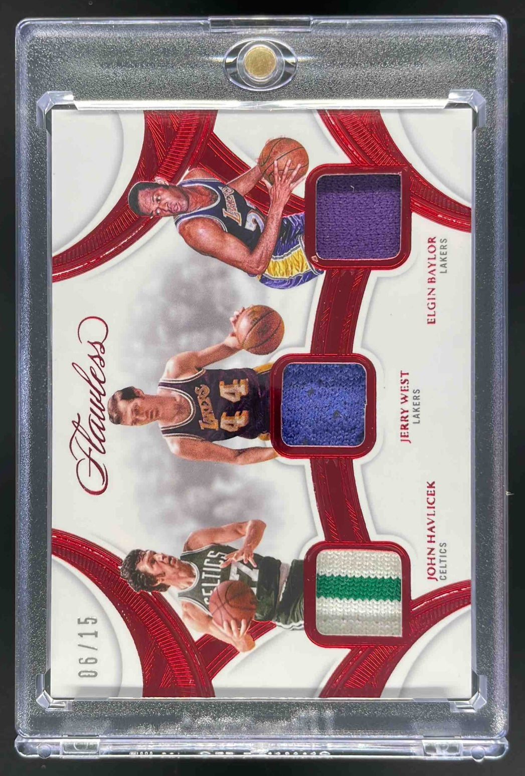 2024 Flawless Triple Patches Ruby #29 John Havlicek Elgin Baylor Jerry West /15