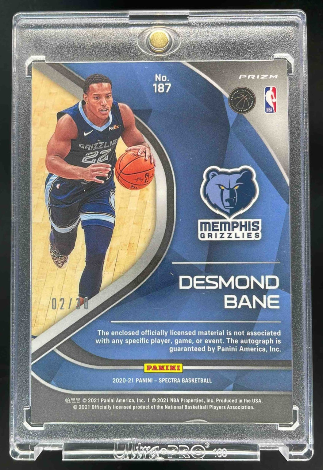 2020-21 Spectra Rookie Jersey Blue Wave FOTL #187 Desmond Bane RC Auto /30
