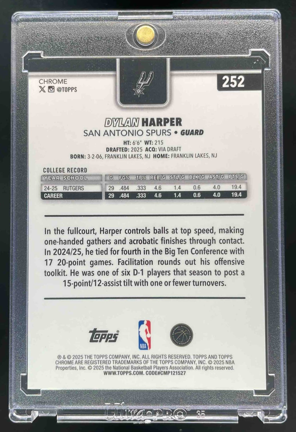 2025-26 Topps Chrome Image Variation Gold Speckle #252 Dylan Harper RC SSP /50