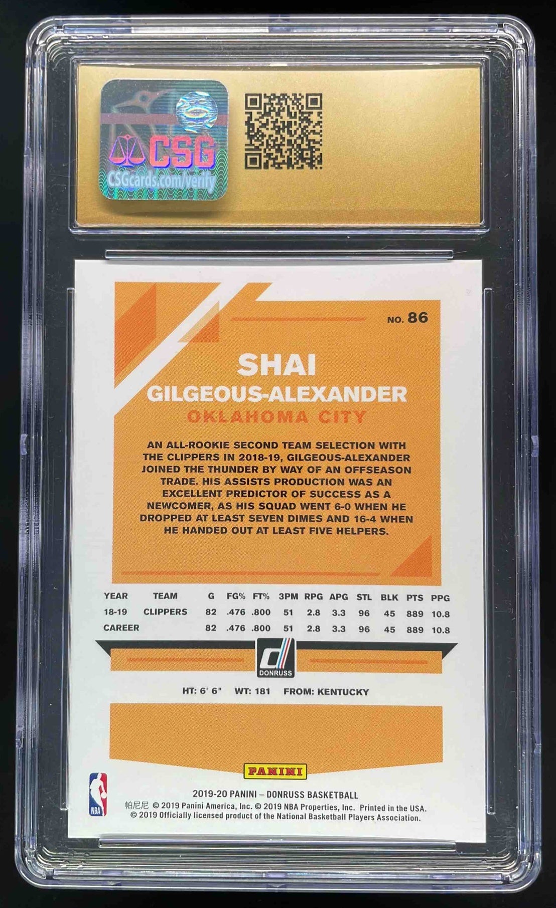 2019 Panini Donruss Press Proof Silver #86 Shai Gilgeous-Alexander /349 CGC 10