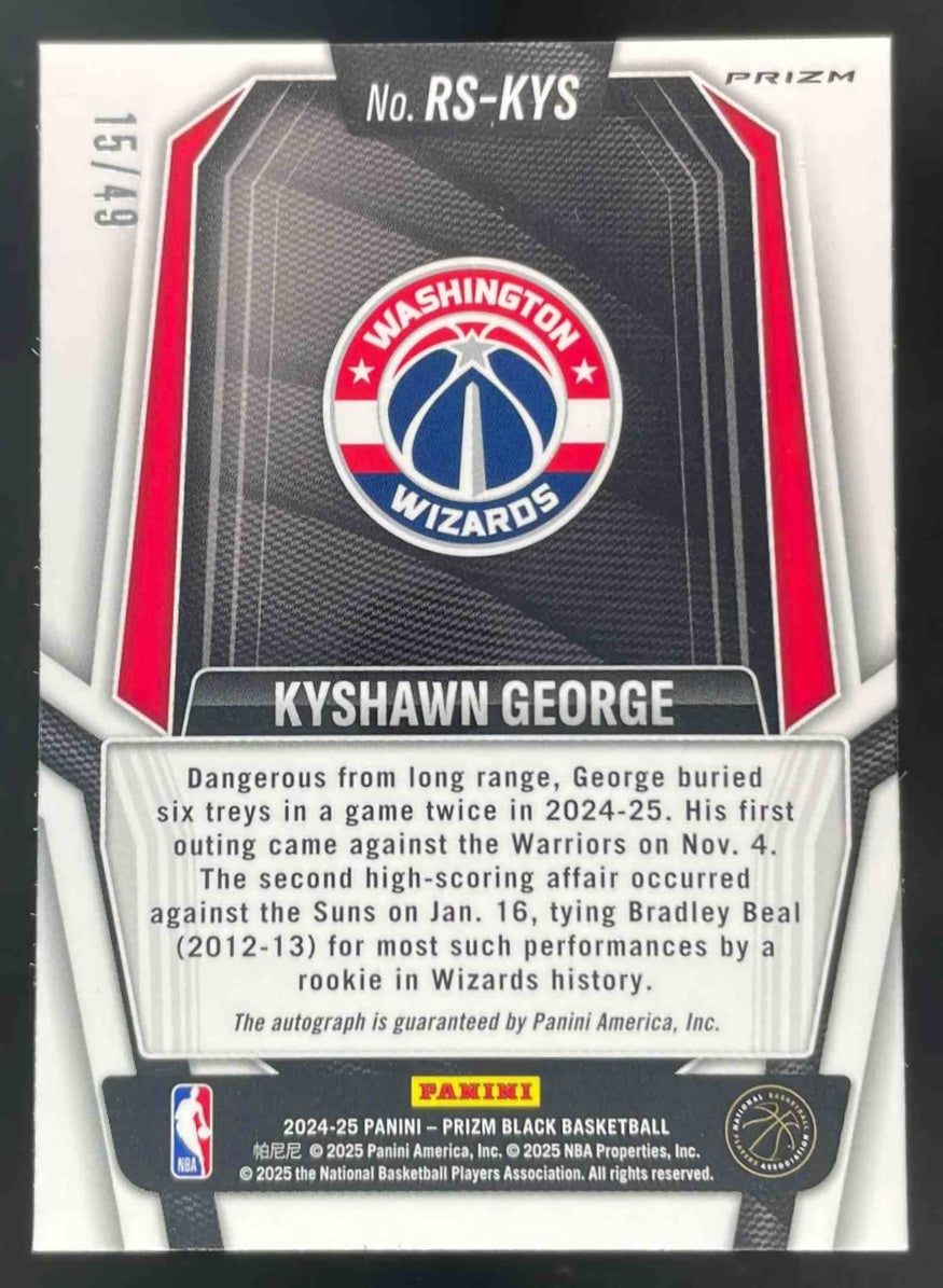 2024-25 Panini Prizm Black Rookie Blue Prizms #RS-KYS Kyshawn George RC Auto /49