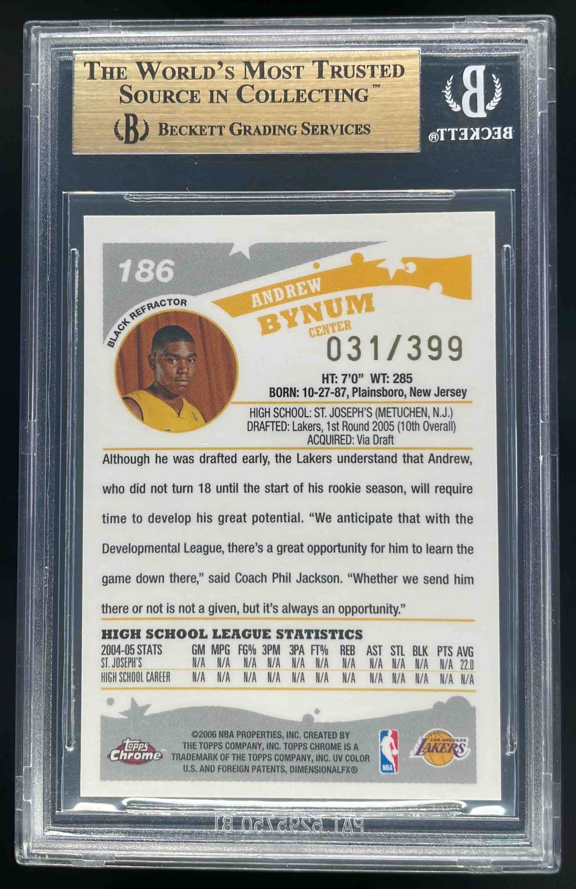 2005-06 Topps Chrome Refractors Black #186 Andrew Bynum RC /399 BGS 9.5