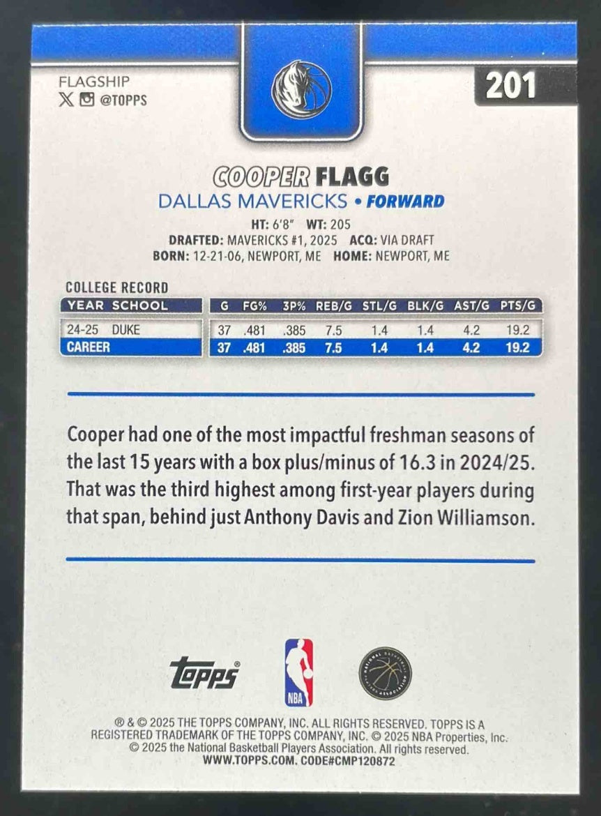 2025-26 Topps Rainbow Foil #201 Cooper Flagg RC