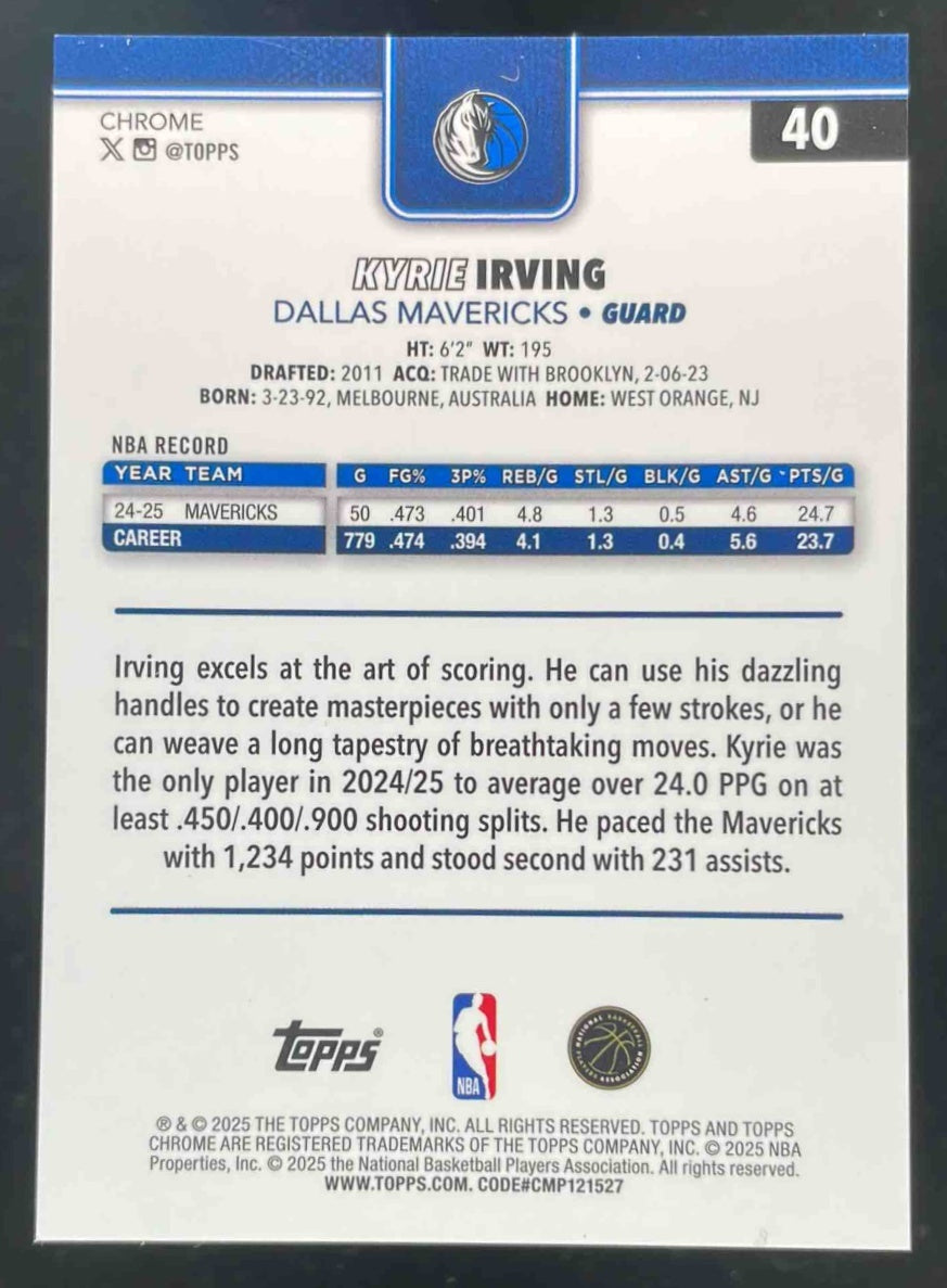 2025-26 Topps Chrome Black Wave Refractor #40 Kyrie Irving /10