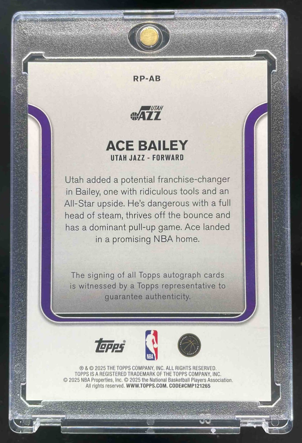 2025-26 Topps Rookie Photo Shoot Autograph #RP-AB Ace Bailey RC Auto