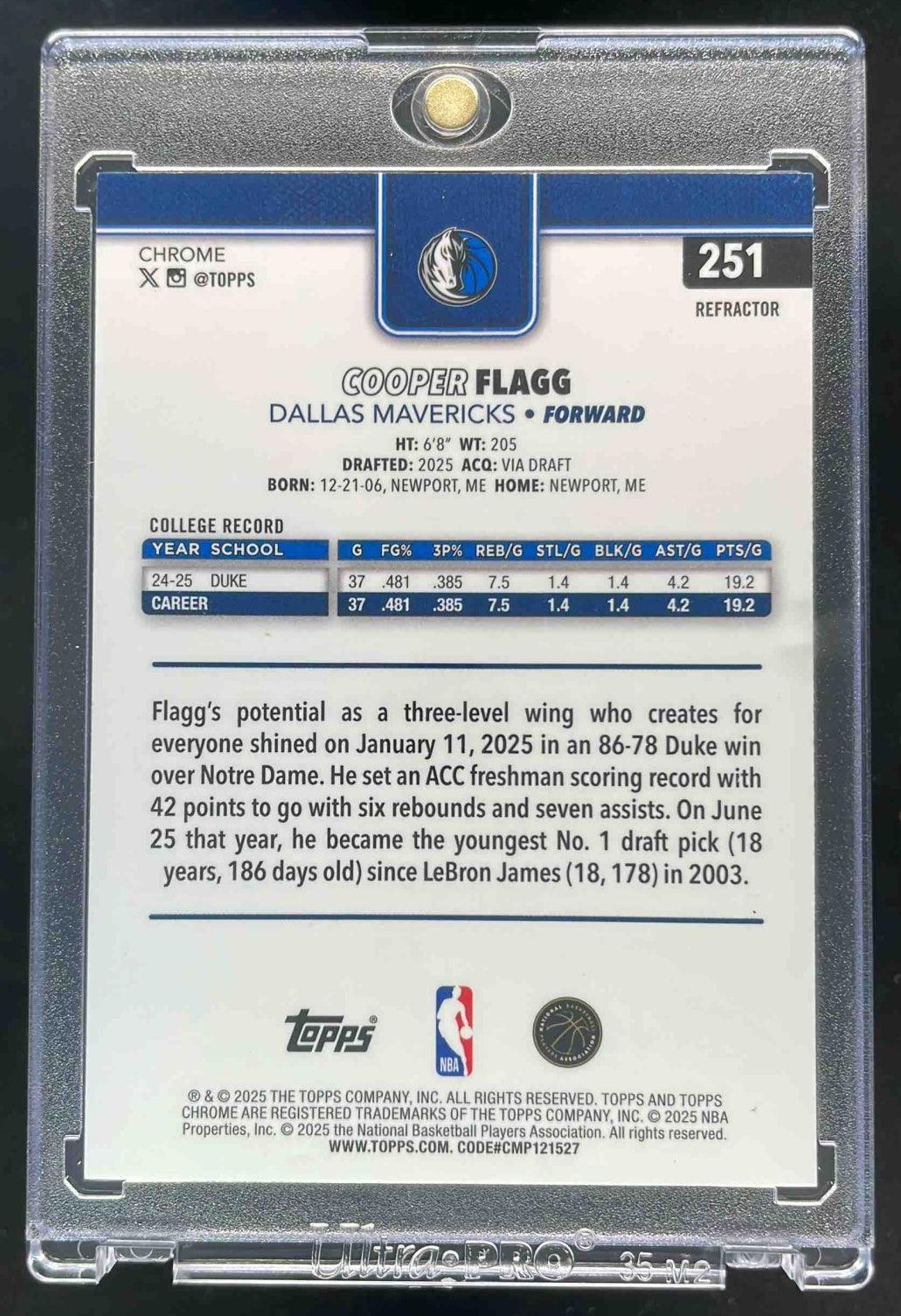 2025-26 Topps Chrome Refractor #251 Cooper Flagg RC