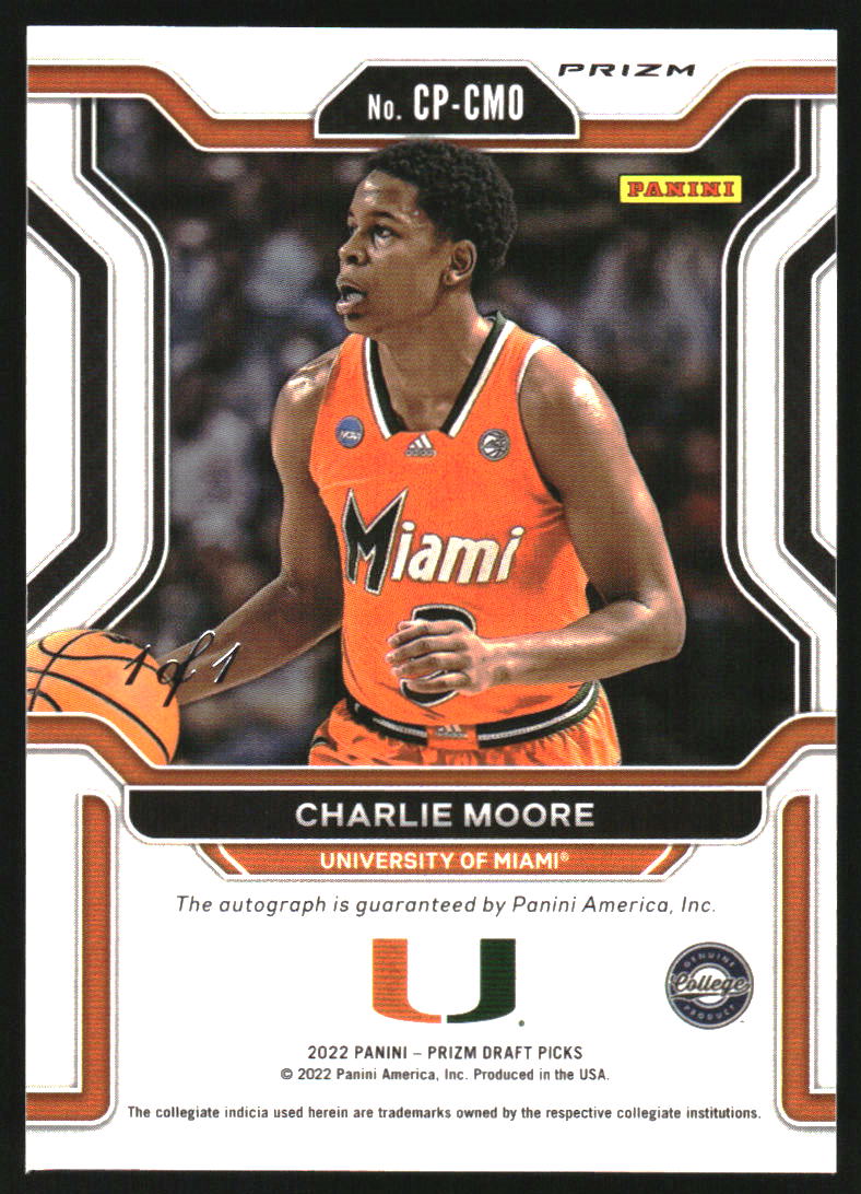 2022-23 Panini Prizm Draft College Penmanship Prizm Black Charlie Moore Auto 1/1