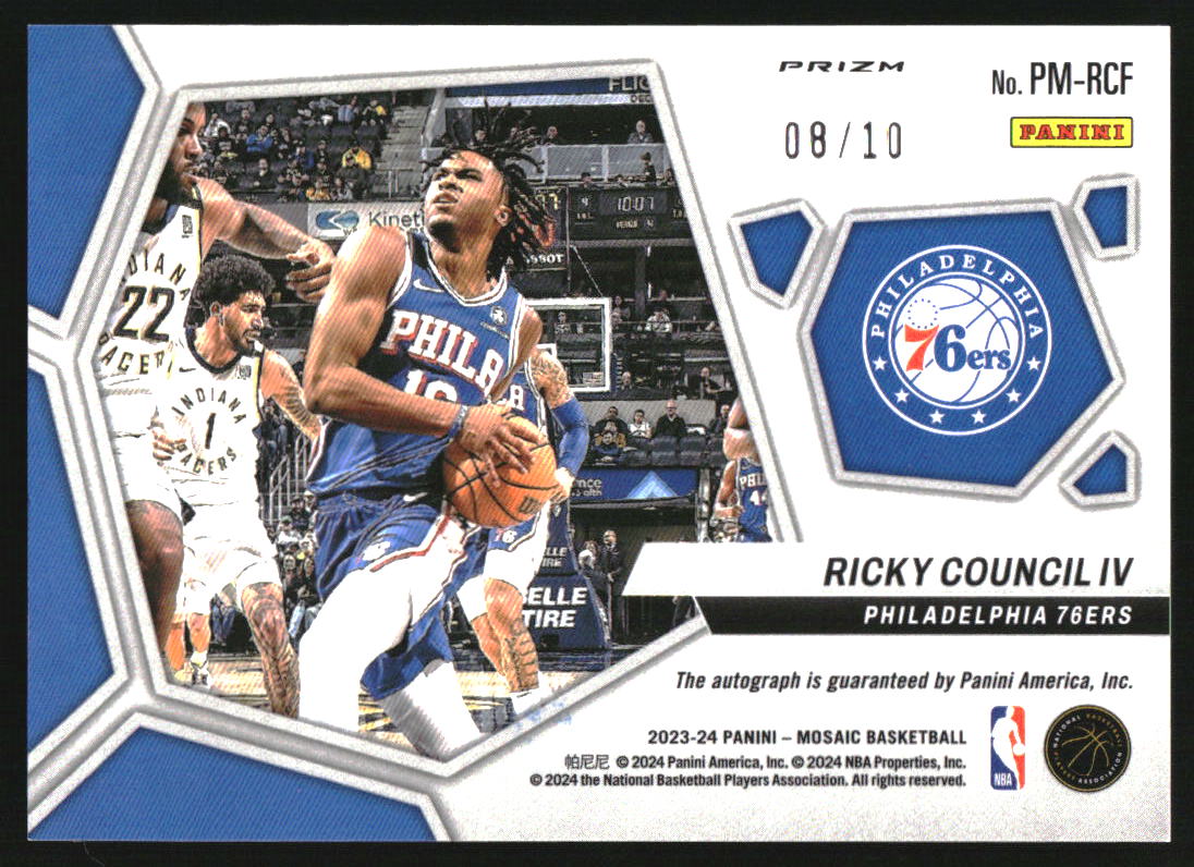 2023-24 Panini Mosaic Pictographs Mosaic Gold Ricky Council IV RC Auto /10