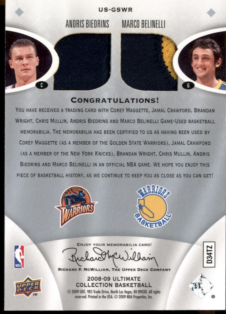 2008 Ultimate Collection Patches Maggette Crawford Mullin Biedrins Belinelli /10