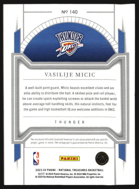 2023-24 Panini National Treasures #140 Vasilije Micic RC Jersey Auto /99