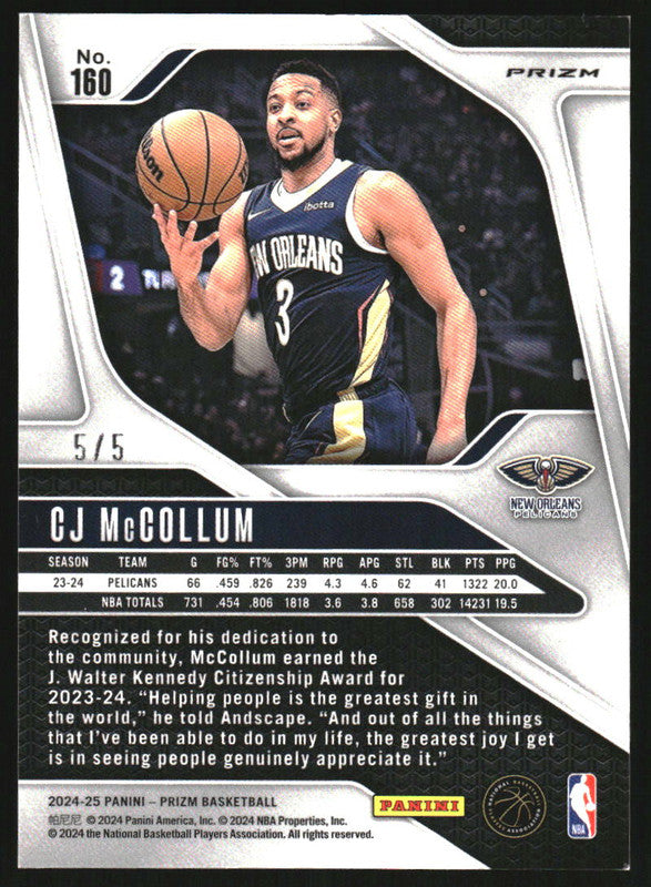 2024-25 Panini Prizm Black Gold Prizm #160 CJ McCollum /5