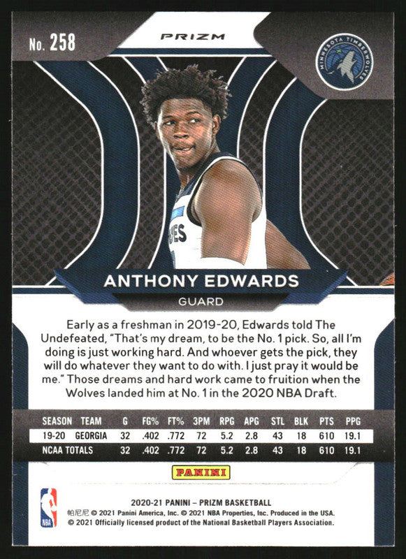 2020-21 Panini Prizm Hyper Prizms #258 Anthony Edwards RC