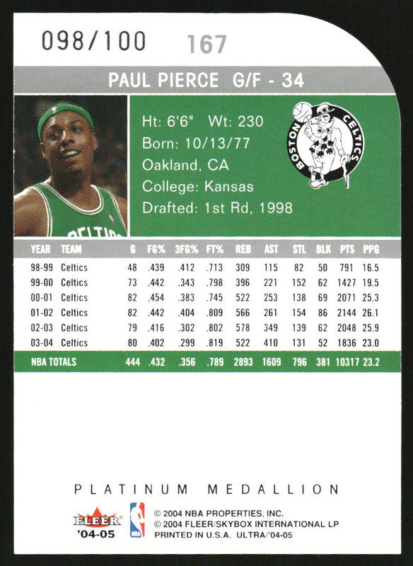 2004-05 Fleer Ultra Platinum Medallion #167 Paul Pierce /100