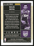 2023-24 Panini One and One Jumbo Jersey Auto Gold Malik Monk Auto /10