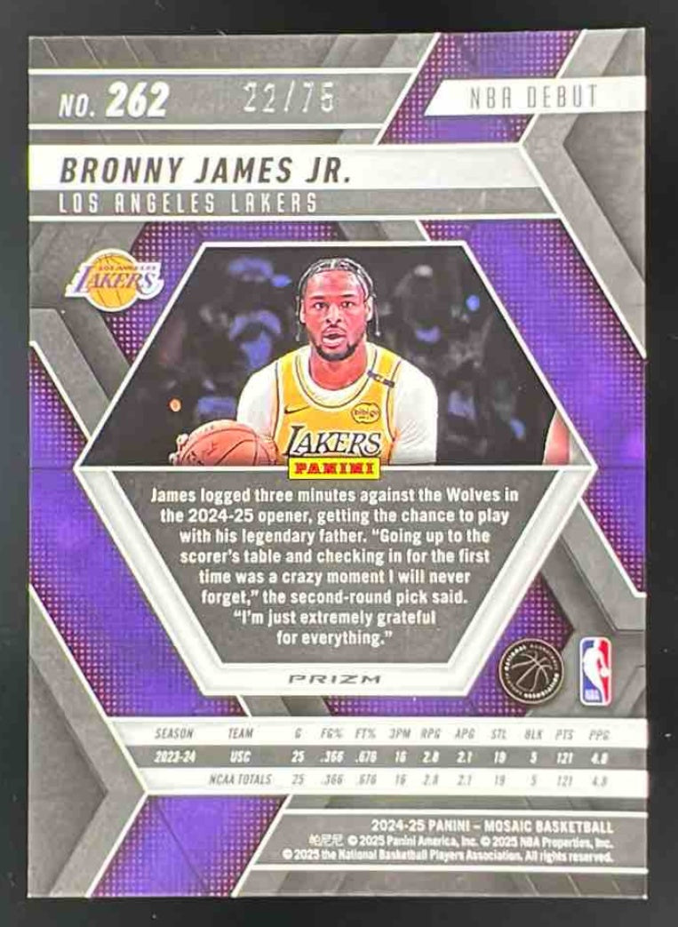 2024 Panini Mosaic International Red Mosaic #262 Bronny James Jr. NBA Debut /75
