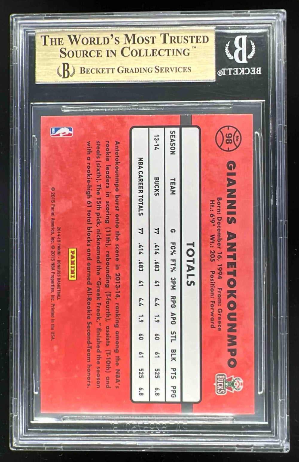 2014-15 Panini Donruss #98 Giannis Antetokounmpo BGS 9.5