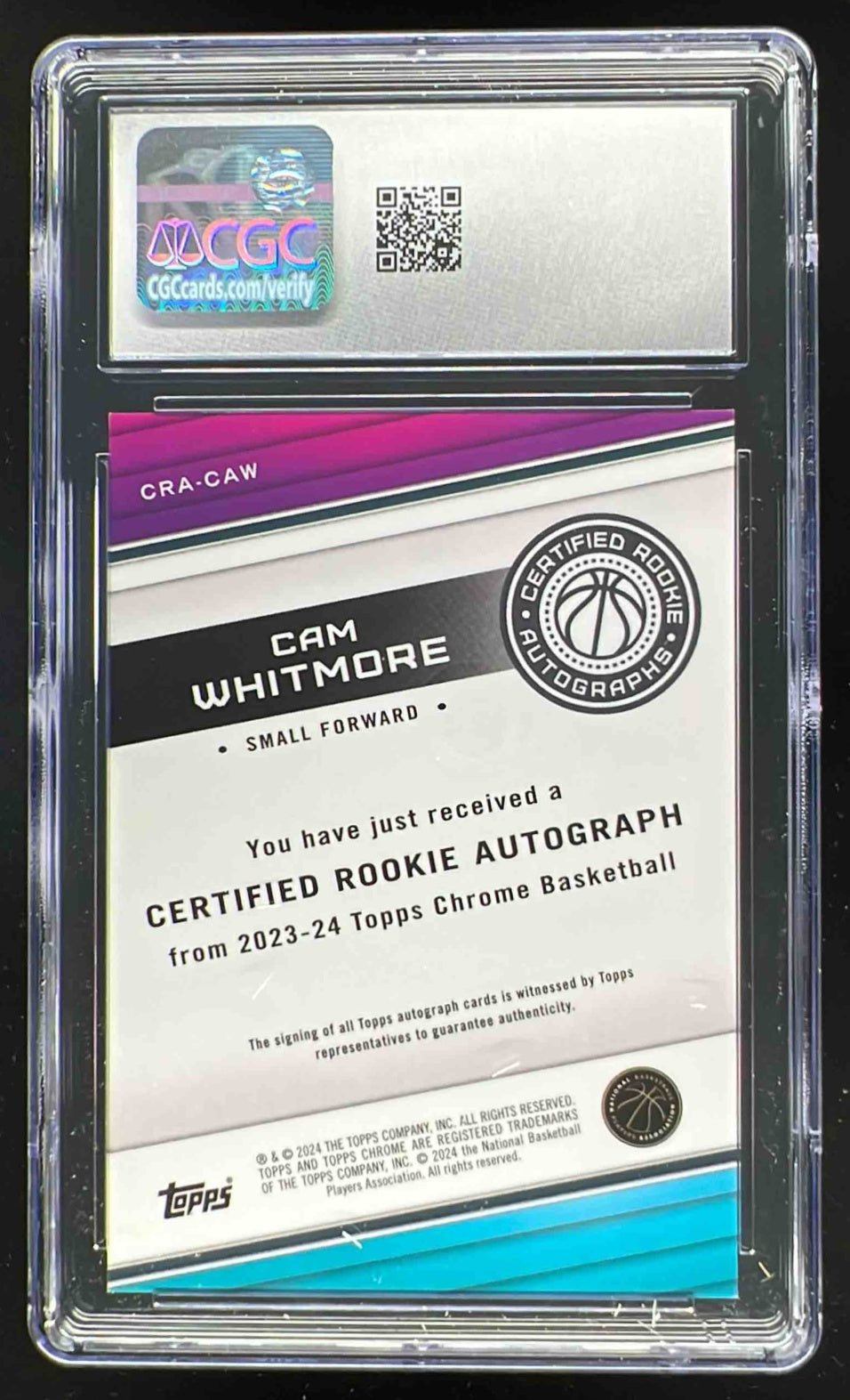 2023 Topps Chrome Sapphire Certified Rookie Gold Cam Whitmore RC Auto /50 CGC 10