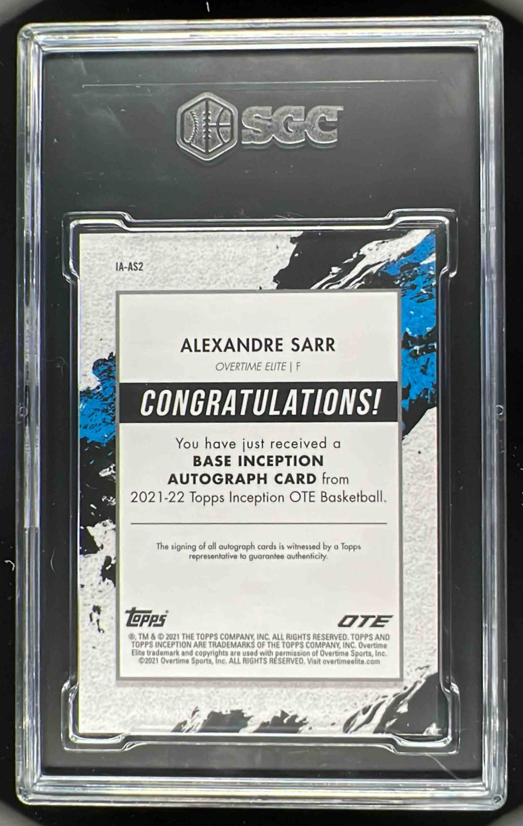 2021 Topps Inception Overtime Elite Blue #IA-AS2 Alexandre Sarr Auto /25 SGC 10