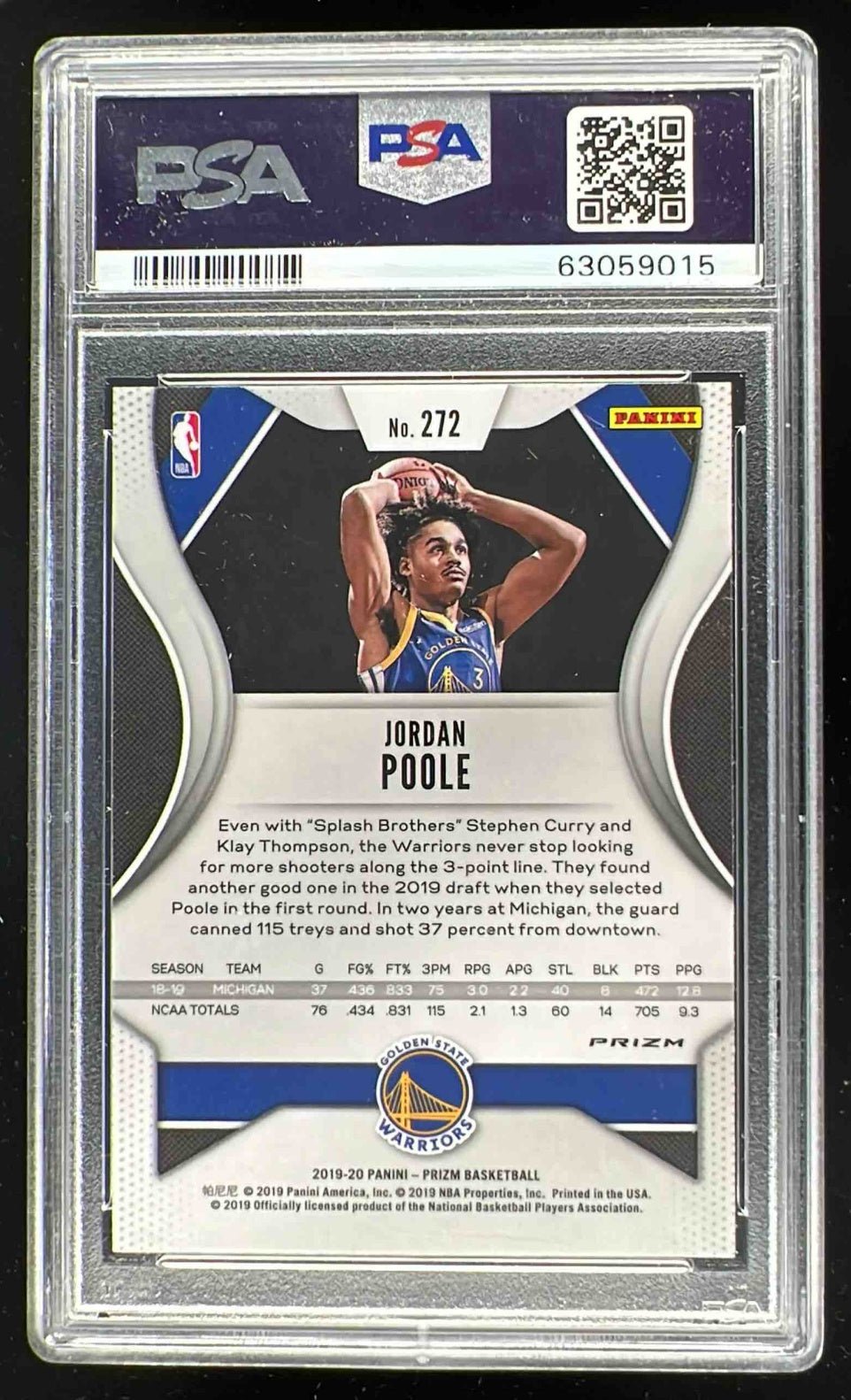2019-20 Panini Prizm Prizms Choice Blue Yellow Green #272 Jordan Poole RC PSA 10