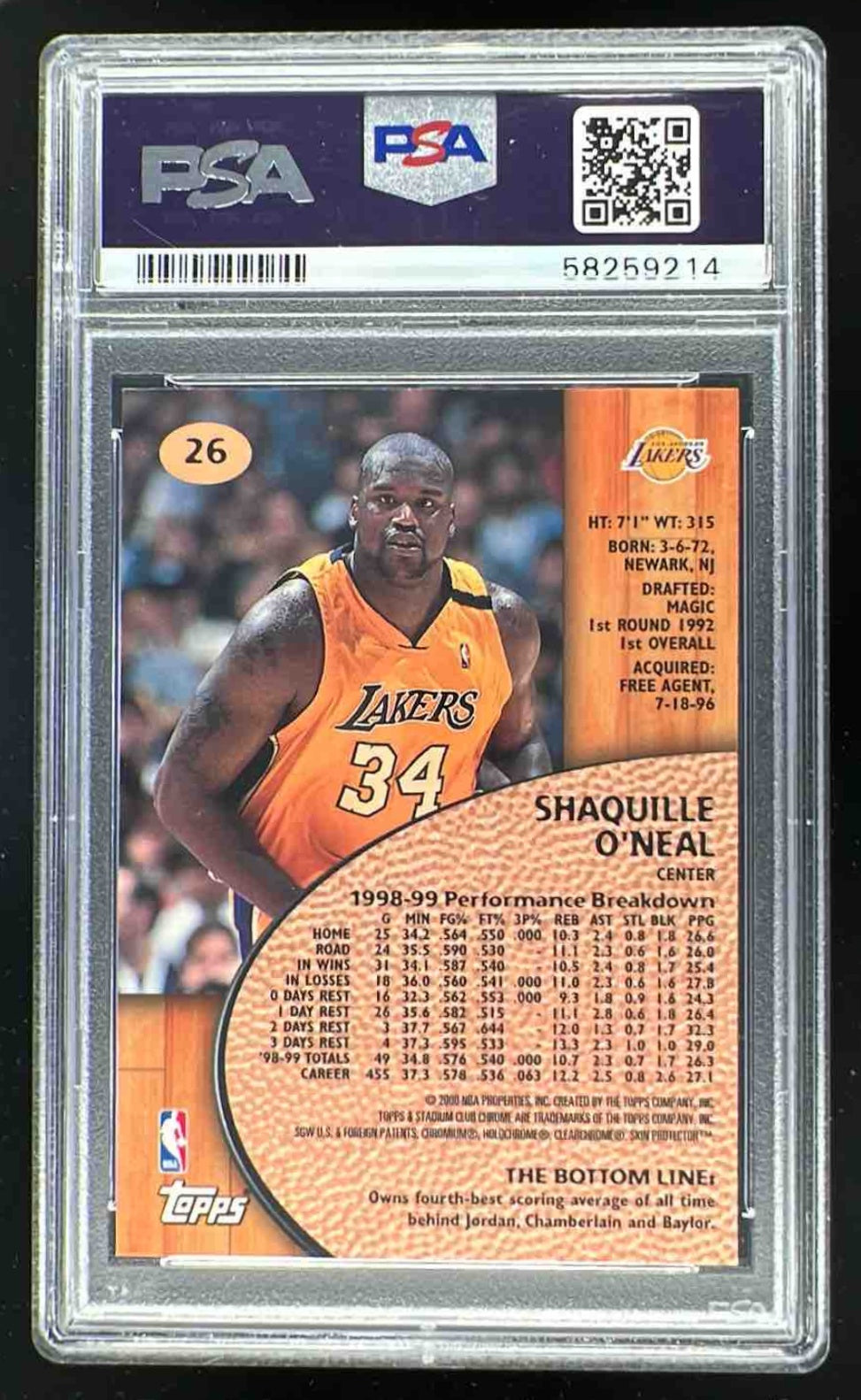 1999-00 Topps Stadium Club Chrome #26 Shaquille O'Neal PSA 9