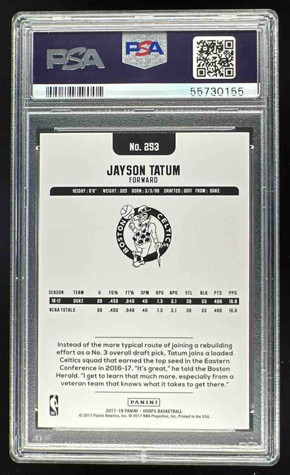 2017-18 Panini Hoops #253 Jayson Tatum RC PSA 10