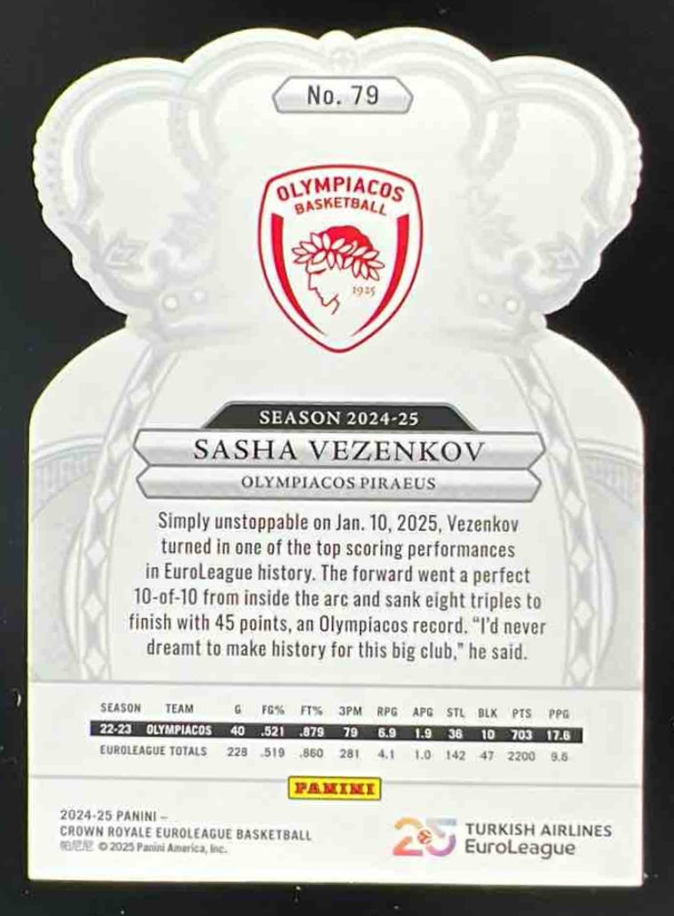 2024 Panini Crown Royale EuroLeague Crystal Gold #79 Sasha Vezenkov /10