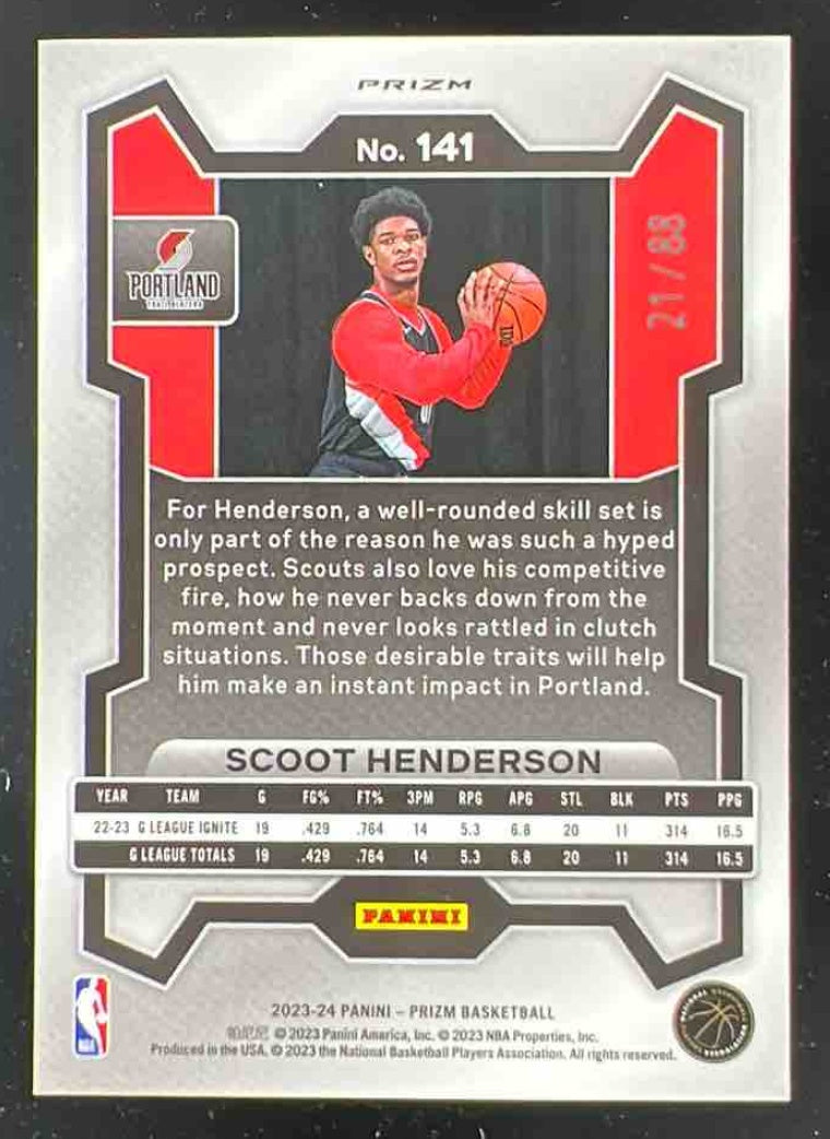 2023-24 Panini Prizm Prizms Choice Red #141 Scoot Henderson RC /88