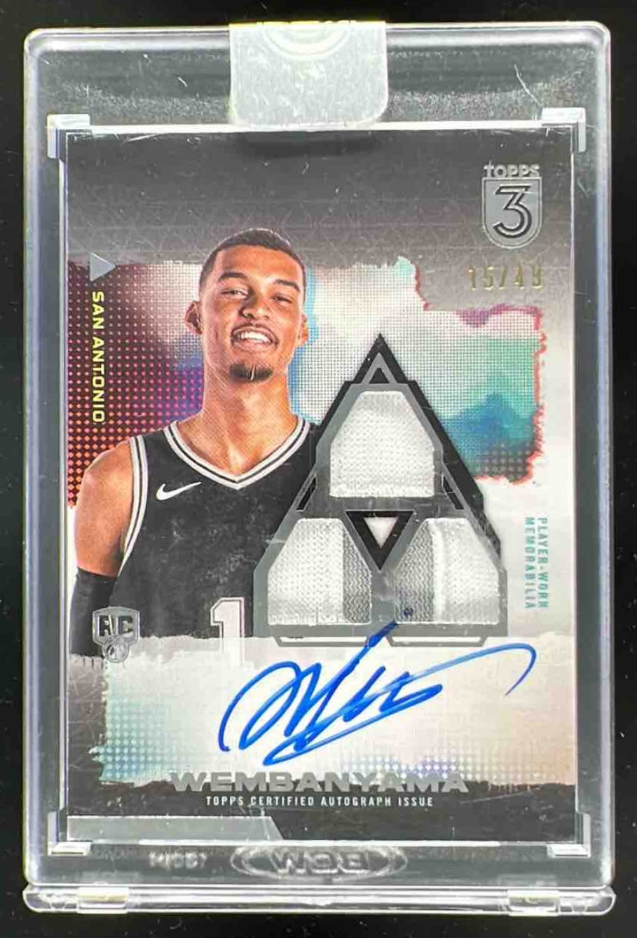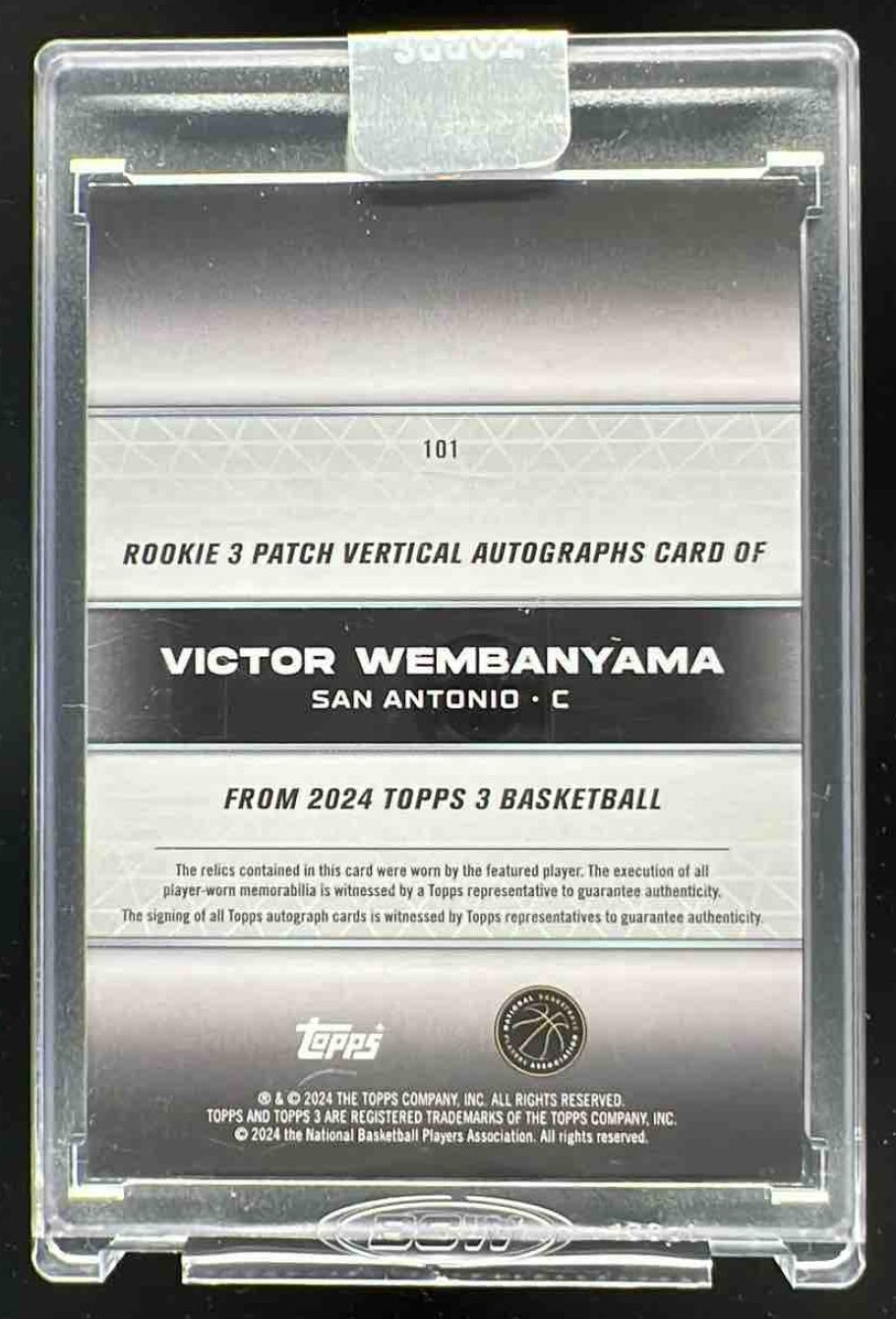 2023-24 Topps 3 Rookie 3 Patch Vertical #101 Victor Wembanyama RC Auto /49