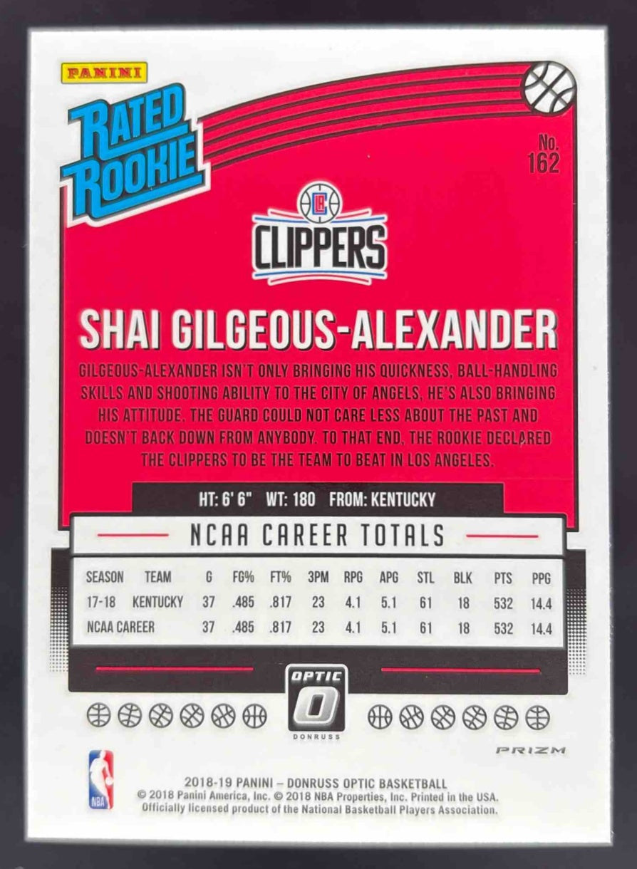 2018-19 Panini Donruss Optic Shock #162 Shai Gilgeous-Alexander RC
