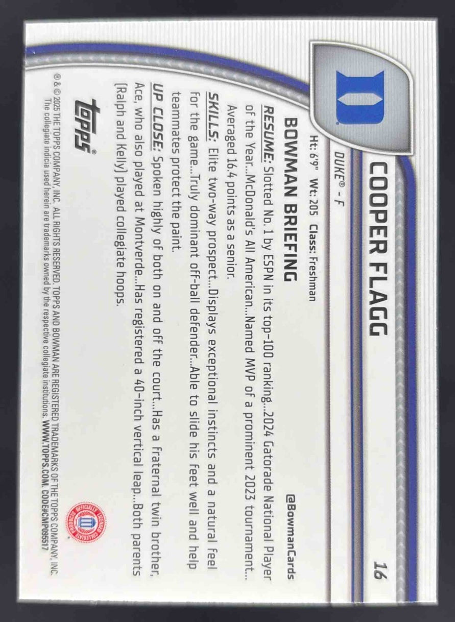 2024-25 Bowman University Chrome Sapphire #16 Cooper Flagg